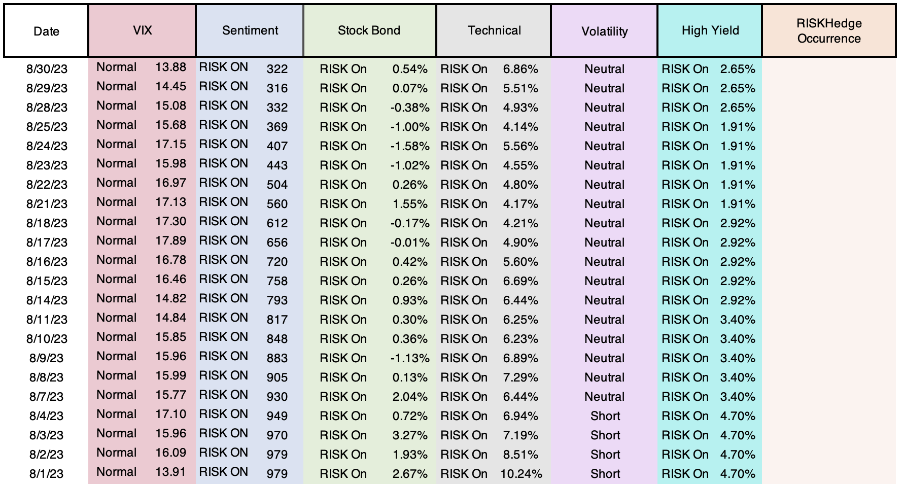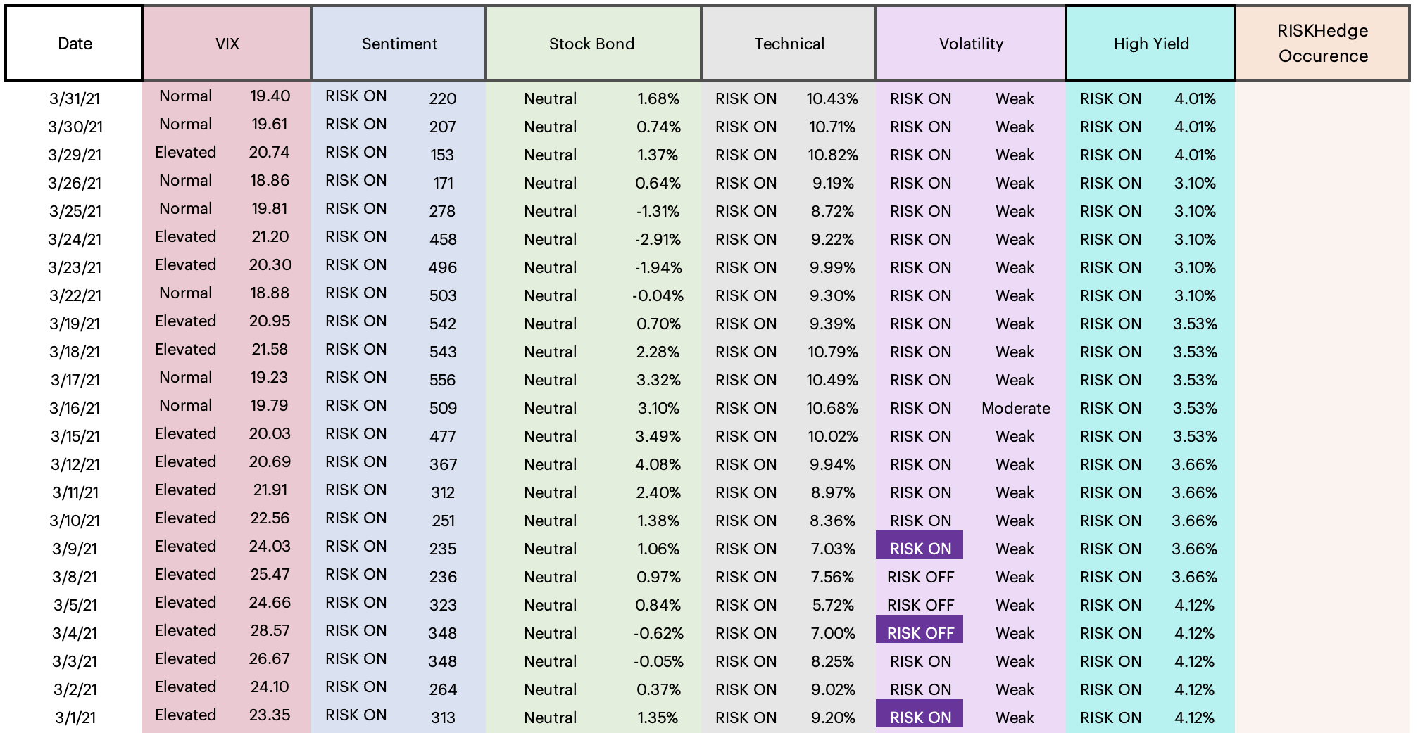 The reduction of equity exposure may range from a low of 25% to a high of 100%, depending on the indicator(s) pointing to RISK OFF.